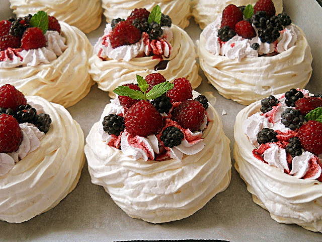 Despre Pavlova ar fi foarte multe de spus, dar probabil cunoasteti istoria acestui desert spectaculos. Da, de acord, putin prea dulce si hipercaloric (dar cine mai sta sa numere caloriile in fata unei farfurii cu acest minunat desert) :D ? Ca e desertul meu preferat, am mai spus-o si cu alte ocazii, dar in ciuda numarului mare de calorii, imi permit sa ma rasfat o data pe an...