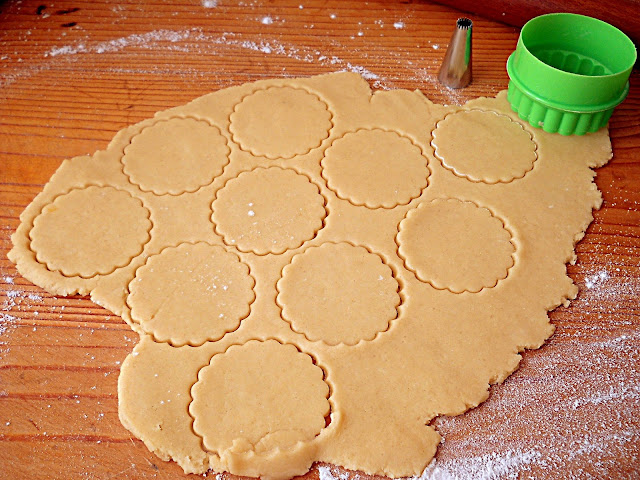 Se spumeaza untul moale cu zaharul pudra. Se adauga oul si se omogenizeaza. La final se adauga faina, amestecand cu o spatula pana se formeaza un aluat destul de moale si cremos, care se inveleste in folie alimentara si se pune in frigider pentru o ora. Dupa o ora de stat la frigider, aluatul se va intari putin si va fi mai usor de lucrat. Se intinde aluatul pe planseta bine infainata. La fel, se da cu faina si sucitorul, pentru ca aluatul sa nu se lipeasca de el. Eu am intins prima data cam 1/3 din aluat, restul l-am lasat in frigider. Dar, pentru a nu intampina probleme, puteti adauga de la inceput inca 50 g faina, deci 350 in loc de 300 si atunci apuatul nu va mai fi atat de lipicios si greu de intins. Oricum, se lucreaza pe planseta infainata. Se intinde aluatul intr-o foaie subtire (3-4 mm) si se decupeaza cerculete. Aceste cerculete se pun in tava pe hartia de copt si se decupeaza mijlocul cerculetelor, astfel incat fiecarui biscuite intreg sa-i corespunda unul decupat. Eu am preferat sa decupez mijlocul direct in tava, pentru ca fiind foarte fragede, s-ar fi rupt sau s-ar fi deformat . Asa, si-au pastrat forma, dupa cum vedeti in poze. Se coc fursecurile la foc mic, pe treapta a doua a aragazului, timp de 8-10 minute. Ele trebuie sa ramana albe si doar pe fund sa devina usor aurii. Se lasa sa se raceasca, apoi se lipesc cu gemul preferat. Eu am folosit gem de caise si gem de capsuni. Se pudreaza cu zahar si se pastreaza in cutii de tabla, inchise ermetic. Rezista si 2 saptamani si pe masura ce stau, se fragezesc si mai mult.