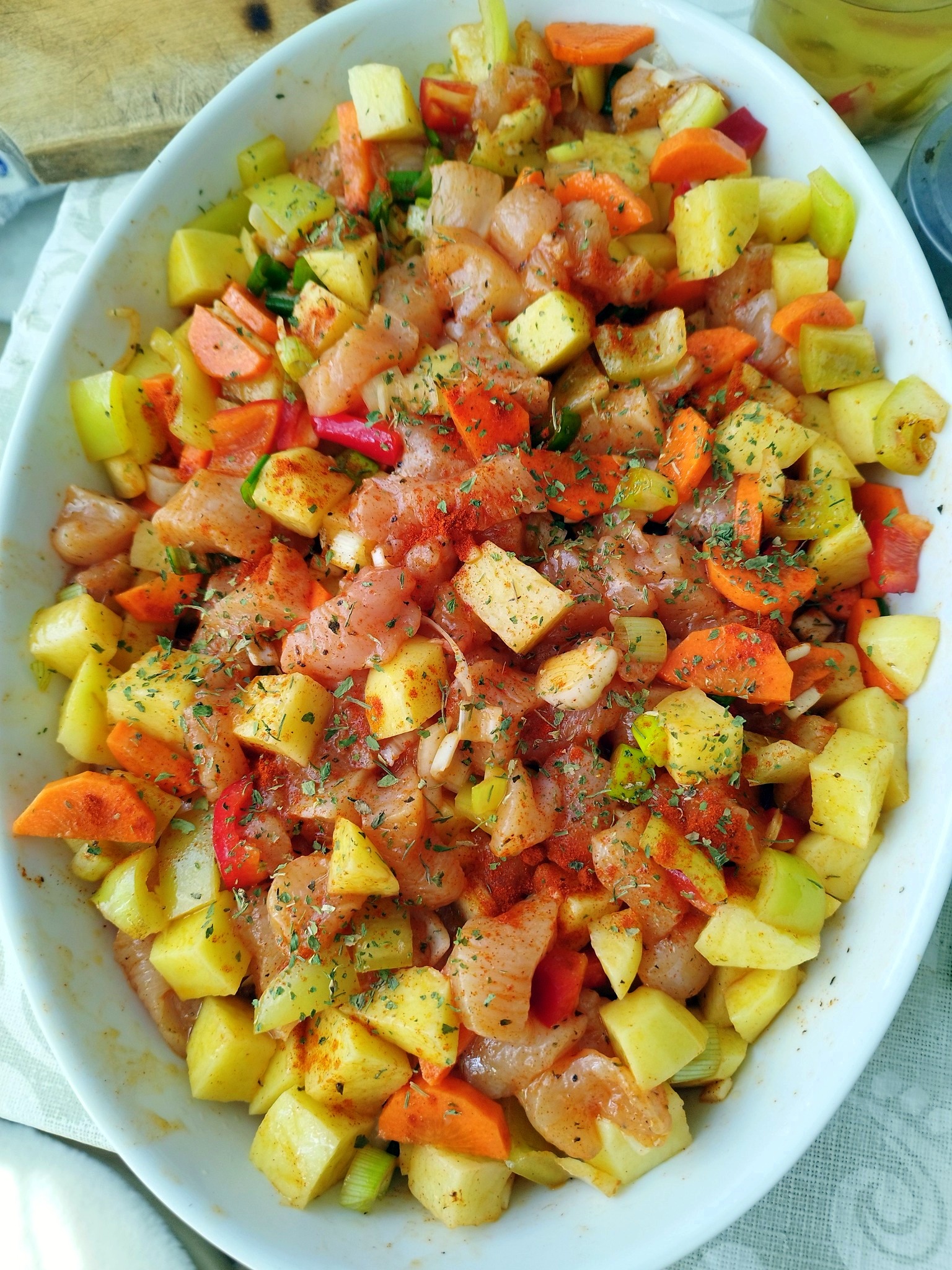 (Nu stiu cum faceti cu puiul, dar eu intotdeauna spal cu apa rece orice carne inainte de gatire. Asa m-am obisnuit si chiar daca am citit de multe ori ca puiul nu se spala inainte de gatire, eu nu pot renunta la acest obicei. 😀)